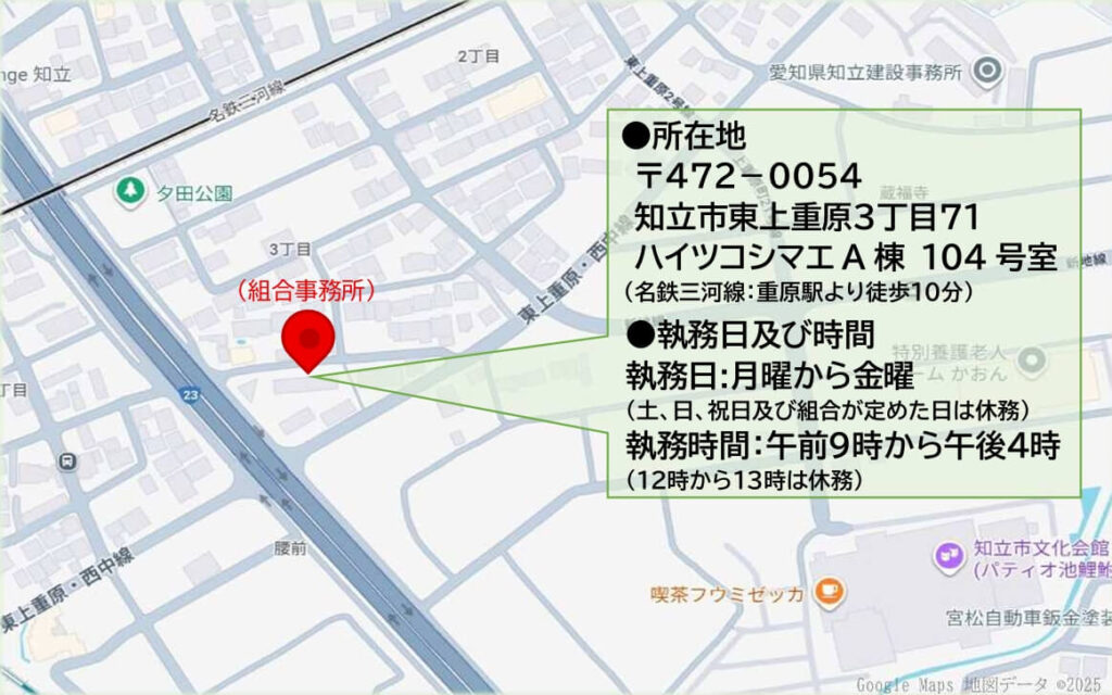 | 執務日 | 月曜から金曜(土曜、日曜、祝日及び組合が定めた日は休務) |
